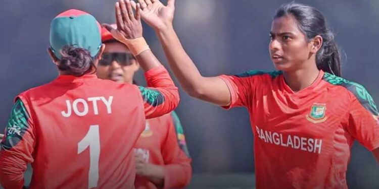 টস জিতে প্রথমে ব্যাটিংয়ে নামে বাংলাদেশ। উদ্বোধনী জুটিতে দিলারা আক্তার ও জুয়াইরিয়া ফেরদৌস মিলে ৬৭ রান করে দলকে শক্ত সূচনা দেয়। দিলারা ২৮ বলেই ৩৯ রানের সংগ্রহ করেন, আর জুয়াইরিয়া ২২ বল খেলে ২২ রানের ইনিংস খেলেন। এরপর শারমিন আক্তার সুপ্তা তাড়াতাড়ি ফিরে গেলেও জ্যোতি ও সোবহানা মোস্তারীর জুটি দলের ভিত মজবুত করে।