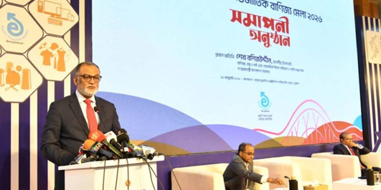 শনিবার (৩১ জানুয়ারি) রাজধানীর পূর্বাচলের বাংলাদেশ-চায়না ফ্রেন্ডশিপ এক্সিবিশন সেন্টারে আয়োজিত সমাপনী অনুষ্ঠানে বাণিজ্য উপদেষ্টা শেখ বশিরউদ্দীন এসব তথ্য জানিয়েছেন। অনুষ্ঠানের সভাপতিত্ব করেন বাণিজ্য মন্ত্রণালয়ের সচিব মাহবুবুর রহমান। রপ্তানি উন্নয়ন ব্যুরোর ভাইস-চেয়ারম্যান ও প্রধান নির্বাহী মোহাম্মদ হাসান আরিফ ছিলেন গেস্ট অব অনার।