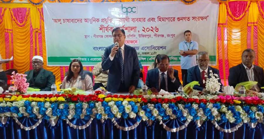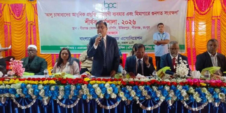 “আলু চাষাবাদের আধুনিক প্রযুক্তি, বহুমুখী ব্যবহার এবং হিমাগারের গুণগত সংরক্ষণ-২০২৬” শীর্ষক এক দিনব্যাপী কর্মশালা রংপুরের পীরগঞ্জে অনুষ্ঠিত হয়েছে। সোমবার পীরগঞ্জ কোল্ড স্টোরেজ, উজিরপুরে আয়োজিত এই অনুষ্ঠানের 主আয়োজক ছিল বাংলাদেশ কোল্ড স্টোরেজ অ্যাসোসিয়েশন, সহযোগিতায় এগ্রো প্রোডাক্টস বিজনেস প্রমোশন কাউন্সিল (এপিবিপিসি) ও বাণিজ্য মন্ত্রণালয়।