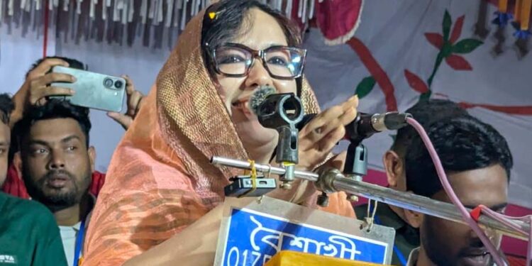 বুধবার সন্ধ্যায় সরাইল উপজেলার পানিশ্বর ইউনিয়নের শাখাইতি গ্রামের পূর্ব পাড়ায় অনুষ্ঠিত নির্বাচনী জনসভায় এসব কথা বলেন রুমিন ফারহানা। জনসভায় উপস্থিত মানুষের উদ্দেশ্যে তিনি বলেন, ‘যদি এলাকার জন্য যোগ্য অভিভাবক না আসে, তাহলে উন্নয়ন আর অগ্রগতি সম্ভব নয়। তাই আপনাদের অনুরোধ—যোগ্য, শিক্ষিত, সৎ এবং কাজে অভিজ্ঞ এমন প্রার্থীকেই ভোট দিয়ে বাছাই করবেন।’