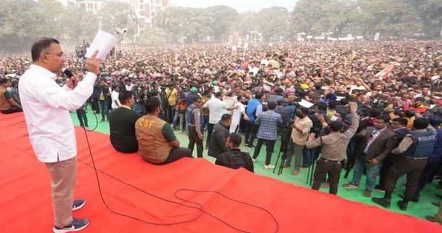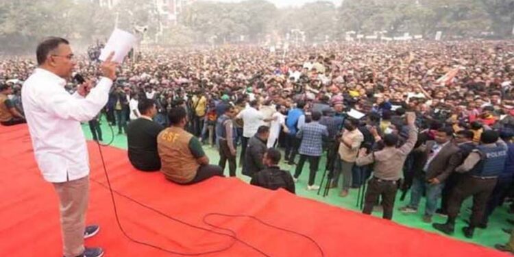 নীলফামারীতে বিএনপির জনসভায় প্রধান অতিথি হিসেবে উপস্থিত হয়ে দলটির চেয়ারপার্সন তারেক রহমান শনিবার (৭ ফেব্রুয়ারি) বললেন, নির্বাচনকে ঘিরে ষড়যন্ত্র করা হচ্ছে কারণ কিছু দল হারার আশঙ্কায় আছে। তিনি জানান, আগামী ১২ ফেব্রুয়ারি অনুষ্ঠিতব্য নির্বাচনে যদি কোনো ধরনের ষড়যন্ত্র করা হয়, তাহলে তাদের জবাব দাঁতভাঙা হবে। ভবিষ্যতের রাজনীতি হবে দেশ পুনর্গঠন ও জনগণের জীবনমান উন্নয়নের রাজনীতি — এমনটাই ভাষ্য দিয়েছেন তিনি।