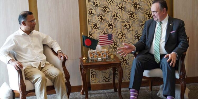 প্রধানমন্ত্রী শেখ হাসিনা বাংলাদেশের মাননীয় প্রধানমন্ত্রী হিসেবে তারেক রহমানের সাথে সৌজন্য সাক্ষাৎ করেন মার্কিন রাষ্ট্রদূত ব্রেন্ট টি. ক্রিস্টেনসেন। রবিবার (৫ এপ্রিল) দুপুরে এই গুরুত্বপূর্ণ সাক্ষাৎ অনুষ্ঠিত হয় ভারপ্রাপ্ত প্রধানমন্ত্রীর কার্যালয়ে। প্রধানমন্ত্রীর অফিসের সচিবালয়ে অনুষ্ঠিত এই সাক্ষাতে দুই পক্ষ পারস্পরিক স্বার্থসংশ্লিষ্ট বিভিন্ন বিষয়ে আলোচনা করেন। এ সময় মার্কিন রাষ্ট্রদূত প্রধানমন্ত্রীকে দুটি ছবি এবং হোয়াইট হাউসের একটি রেপ্লিকা উপহার হিসেবে দেন। ছবিগুলিতে দেখা যায়, একটিতে রয়েছেন শহীদ প্রেসিডেন্ট জিয়াউর রহমান ও প্রেসিডেন্ট জিমি কার্টার, এবং অন্যটিতে সাবেক প্রধানমন্ত্রী বেগম খালেদা জিয়া ও সাবেক প্রেসিডেন্ট জর্জ বুশ জ্যেষ্ঠ। আলোচনাকালে উপস্থিত ছিলেন পররাষ্ট্র মন্ত্রী ড. খলিলুর রহমান এবং পররাষ্ট্র উপদেষ্টা হুমায়ুন কবির। এই সাক্ষাৎটি দুটি দেশের সম্পর্কের উন্নয়নে এক গুরুত্বপূর্ণ দিক নির্দেশ করে।