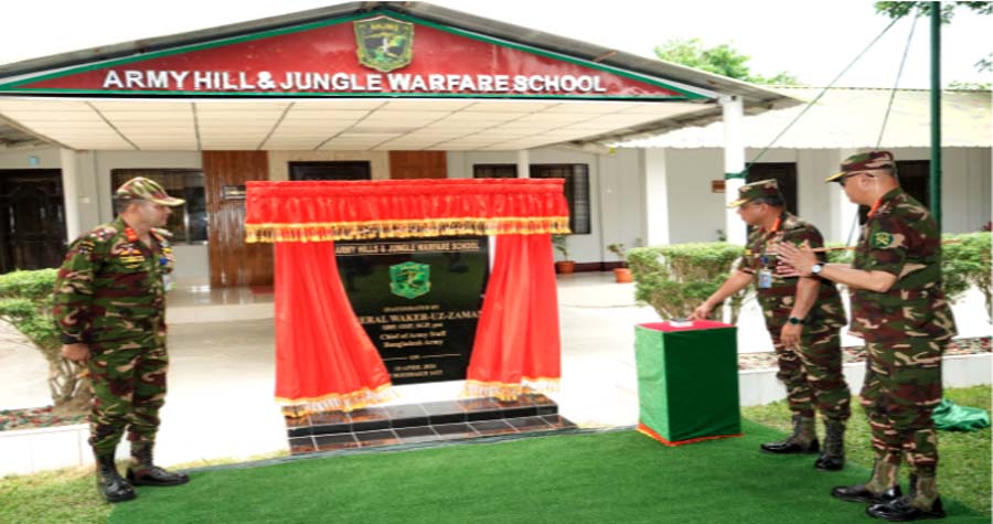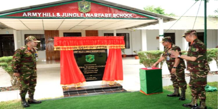 বান্দরবান রিজিয়নের অন্তর্গত আলীকদম সেনানিবাসে সেনাবাহিনী প্রধান জেনারেল ওয়াকার-উজ-জামান রবিবার (১৮ এপ্রিল) নতুনভাবে নির্মিত আর্মি হিল অ্যান্ড জঙ্গল ওয়ারফেয়ার স্কুলের আনুষ্ঠানিক উদ্বোধন করেন। এই প্রকাশ্যে উদ্বোধনী অনুষ্ঠানটি আলীকদম সেনানিবাসে অনুষ্ঠিত হয়, যেখানে সেনা কর্মকর্তারা উপস্থিত ছিলেন।