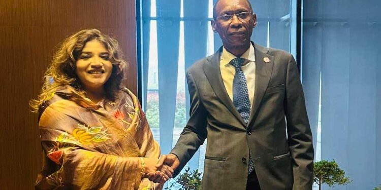 প্রধানমন্ত্রী তারেক রহমানের নেতৃত্বে আফ্রিকার দেশগুলোর সঙ্গে সম্পর্ক জোরদারে বাংলাদেশ নতুন অঙ্গীকার ব্যক্ত করেছে। ঢাকা ও ডাকা দুই রাজধানীর মধ্যে রাজনৈতিক ও অর্থনৈতিক সম্পর্ক আরও শক্তিশালী করার লক্ষ্যে তারা একমত হয়েছেন। আফ্রিকায় শান্তি ও নিরাপত্তা নিয়ে অনুষ্ঠিত ডাকার আন্তর্জাতিক ফোরামের ফাঁকে বাংলাদেশ পররাষ্ট্র প্রতিমন্ত্রী শামা ওবায়েদ ইসলাম সেনেগালের পররাষ্ট্রমন্ত্রী শেখ নিয়াংয়ের সঙ্গে দ্বিপক্ষীয় বৈঠক করেন। এ সময় তারা সম্পর্ক উন্নয়নে যৌথ পদক্ষেপ গ্রহণের সিদ্ধান্ত নেন। পররাষ্ট্র মন্ত্রণালয়ের এক সংবাদ বিজ্ঞপ্তিতে জানানো হয়, বাংলাদেশ সরকারের এই অঙ্গীকারকে স্বাগত জানিয়ে সেনেগাল এই দ্বিপক্ষীয় সম্পর্কের দিকটি প্রশংসা করে। সফরকালে বাংলাদেশের পক্ষ থেকে ১৯৮১ সালের মার্চে শহীদ প্রেসিডেন্ট জিয়াউর রহমানের সেনেগাল সফর স্মরণ করা হয়, যা ছিল বাংলাদেশের একজন রাষ্ট্রপ্রধানের প্রথম সফর। এ ছাড়া, বাংলাদেশের সাম্প্রতিক জাতীয় নির্বাচন ও ক্ষমতাসীন দলের নির্বাচনী ফলাফল সম্পর্কেও সাধারণ ধারণা প্রদান করেন। দুই মন্ত্রী দ্রুত পররাষ্ট্র দপ্তর পর্যায়ের আলোচনা সভা (এফওসি) আয়োজনের বিষয়ে একমত হন, যার মাধ্যমে রাজনৈতিক সংলাপ আরও জোরদার ও বিভিন্ন খাতে সহযোগিতা প্রসারিত হবে। দ্বিপক্ষীয় বাণিজ্য ও বিনিয়োগ বৃদ্ধি করতে যৌথ বাণিজ্য কমিশন গঠনের ব্যাপারেও আলোচনা হয়। বাংলাদেশের পক্ষ থেকে তৈরি পোশাক, বস্ত্র, ওষুধ, জাহাজ নির্মাণ, চামড়া, কাঁচা পাট, পাটজাত পণ্য ও তথ্যপ্রযুক্তির ক্ষেত্রে দেশের সক্ষমতা তুলে ধরা হয়, পাশাপাশি কৃষি ও কৃষিপণ্য প্রক্রিয়াজাতকরণের জন্য সহযোগিতার প্রস্তাব দেওয়া হয়। সেনেগালের পররাষ্ট্রমন্ত্রী আফ্রিকায় শান্তি প্রতিষ্ঠায় বাংলাদেশের অবদান প্রশংসা করেন এবং বিভিন্ন বহুপাক্ষে ফোরামে ঢাকার সঙ্গে কাজের আগ্রহ প্রকাশ করেন। এছাড়া, দুই দেশ একে অন্যের রাজধানীতে আবাসিক কূটনৈতিক মিশন খোলার বিষয়েও আলোচনা হয়। পররাষ্ট্র প্রতিমন্ত্রী সেনেগালের পররাষ্ট্রমন্ত্রীকে বাংলাদেশ সফরের আমন্ত্রণ জানান, যা নীতিগতভাবে গ্রহণ করা হয়। এই বৈঠকে উপস্থিত ছিলেন মরক্কোয় বাংলাদেশের রাষ্ট্রদূত ও সেনেগালে বাংলাদেশের মনোনীত রাষ্ট্রদূত সাদিয়া ফাইজুন্নেসা। পরে, তিনি স্থানীয় দৈনিক ‘লে সোলেইল’ ও সেনেগালের জাতীয় টেলিভিশনকে সাক্ষাৎকার দেন। সেখানে তিনি শান্তি, উন্নয়ন ও স্থিতিশীলতার জন্য শেখানো সরকারের বিভিন্ন উদ্যোগের পাশাপাশি নারী কল্যাণে গৃহীত পদক্ষেপের কথা তুলে ধরেন।