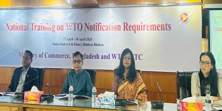 বৈশ্বিক বাণিজ্য ব্যবস্থার সঙ্গে সমন্বয় নিশ্চিত করতে এবং বিশ্ব বাণিজ্য সংস্থা (WTO)-এর নোটিফিকেশন সংক্রান্ত বাধ্যবাধকতা যথাযথভাবে পালন করতে দেশের বিভিন্ন মন্ত্রণালয় ও কর্মকর্তাদের মধ্যে দক্ষতা বাড়ানোর জন্য গুরুত্বপূর্ণ উদ্যোগ নেওয়া হয়েছে। রাজধানীর বিদ্যুৎ ভবনে আয়োজিত ‘ন্যাশনাল ট্রেনিং অন ডব্লিউটিও নোটিফিকেশন রিকয়ারমেন্টস’ নামে চার দিনব্যাপী এই প্রশিক্ষণ কর্মসূচির উদ্বোধনী অনুষ্ঠানে প্রধান অতিথি হিসেবে উপস্থিত ছিলেন বাণিজ্যমন্ত্রী খন্দকার আব্দুল মুক্তাদির। তিনি বলেন, ডব্লিউটিও-এর নিয়ম মেনে চলা, নিয়মিত হালনাগাদ থাকা এবং বৈশ্বিক অগ্রগতির সঙ্গে তাল মিলিয়ে চলার জন্য নোটিফিকেশন অত্যন্ত গুরুত্বপূর্ণ। এটি ডব্লিউটিও-এর টুলবক্সের একটি গুরুত্বপূর্ণ উপাদান, যার যথাযথ প্রয়োগ বৈদেশিক বাণিজ্যে আরও কার্যকর অংশগ্রহণের সুযোগ সৃষ্টি করবে। তিনি অভিজ্ঞতা ভাগ করে বলেছিলেন, এ ধরনের প্রশিক্ষণ কর্মসূচি বিভিন্ন মন্ত্রণালয়ের মধ্যে সমন্বয় জোরদার করবে এবং আন্তর্জাতিক বাণিজ্য সংক্রান্ত জ্ঞান ও দক্ষতা উন্নয়নে সহায়ক হবে। কর্মশালা শেষে শেখার ফলত অর্জিত জ্ঞান প্রয়োগে গুরুত্বারোপ করেন। এর জন্য তিনি ইন্টারন্যাশনাল ট্রেড অ্যান্ড ট্রেনিং সেন্টার (ITTC)-এর সাথে সমন্বয়ের ওপর জোর দেন এবং ভবিষ্যতে এই ধরনের নিয়মিত প্রশিক্ষণ আয়োজনের আশাবাদ ব্যক্ত করেন। মন্ত্রী আরও উল্লেখ করেন, গত তিন দশকের বেশি সময় ধরে বিশ্ব সম্প্রদায়ের যৌথ প্রচেষ্টায় গড়ে ওঠা ডব্লিউটিও আরও শক্তিশালী হয়ে উঠবে বলে তিনি দৃঢ় প্রত্যাশা ব্যক্ত করেন, যার মাধ্যমে সংস্থাটি নতুন উদ্যমে কার্যক্রম পরিচালনা করবে। অনুষ্ঠানে স্বাগত বক্তব্য দেন বাণিজ্য মন্ত্রণালয়ের ডব্লিউটিও অনুবিভাগের অতিরিক্ত সচিব খাদিজা নাজনীন। বিশেষ অতিথি হিসেবে উপস্থিত ছিলেন বাণিজ্য মন্ত্রণালয়ের সচিব (রুটিন দায়িত্ব) মো. আবদুর রহিম খান, ডব্লিউটিও-এর এশিয়া ও প্যাসিফিক অঞ্চলের হেড অব কাউন্সিলর ওসমান আলী খিলজি এবং সেন্ট্রাল ও ইস্টার্ন ইউরোপ, সেন্ট্রাল এশিয়া ও ককেশাস অঞ্চলের হেড অব কাউন্সিলর ড. কেঞ্জা লি মেনটেক। চার দিনব্যাপী এই প্রশিক্ষণে দেশের বিভিন্ন মন্ত্রণালয়ের মোট ৫০ জন কর্মকর্তা অংশ নিচ্ছেন, এবং বিভিন্ন গুরুত্বপূর্ণ বিষয় নিয়ে সেশন অনুষ্ঠিত হবে। এই প্রশিক্ষণ কার্যক্রম দেশের জন্য এক গুরুত্বপূর্ণ ধাপ হিসেবে বিবেচিত, যা দেশের বাণিজ্য উন্নয়নে বিরাট ভূমিকা রাখবে বলে প্রত্যাশা।