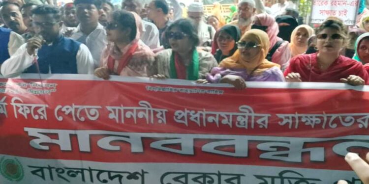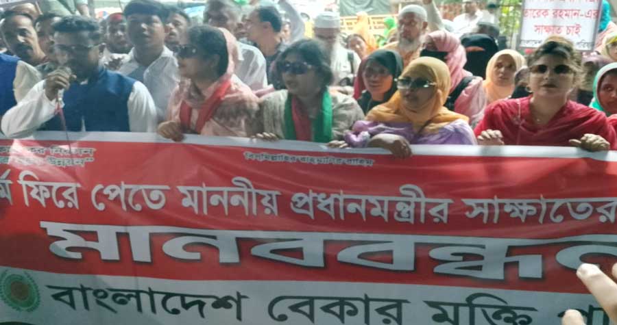 প্রধানমন্ত্রীর সাক্ষাৎ দাবিতে বেকার মুক্তি পরিষদের মানববন্ধন