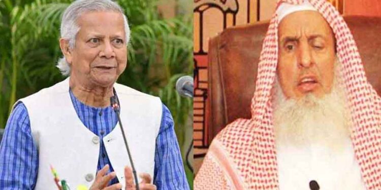 সৌদি আরবের বিশিষ্ট ধর্মীয় নেতা ও মুসলিম বিশ্বের প্রভাবশালী ব্যক্তিত্ব, গ্র্যান্ড মুফতি ও কাউন্সিল অব সিনিয়র স্কলার্সের প্রধান শেখ আবদুল আজিজ আল-শেখের মৃত্যুতে গভীর শোক প্রকাশ করেছেন দেশের প্রধান উপদেষ্টা অধ্যাপক মুহাম্মদ ইউনূস। মঙ্গলবার (২৩ সেপ্টেম্বর) সকালে রিয়াদের নিজ বাসভবনে ৮২ বছর বয়সে তিনি ইন্তেকাল করেন। এই দুঃখজনক খবর বুধবার (২৪ সেপ্টেম্বর) প্রধান উপদেষ্টার প্রেস উইংয়ের এক শোক বার্তায় জানানো হয়।