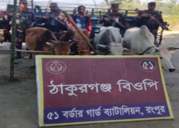 Read moreনীলফামারীর ডিমলায় ভারতের ঠাকুরগঞ্জ সীমান্তের বিওপি এলাকায় রংপুর ব্যাটালিয়নের (বিজিবি) অধীনস্থ ঠাকুরগঞ্জ বিওপির টহল দল একটি চোরাচালানকারীসহ কয়েকটি গবাদি পশু...