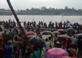 সিরাজগঞ্জের উল্লাপাড়া উপজেলার সোনতলা সেতু সংলগ্ন করতোয়া নদীতে অনুষ্ঠিত একটি নৌকাবাইচ প্রতিযোগিতা চলাকালীন সময় দুই পক্ষের পানসি নৌকার বাইচালদের মধ্যে...